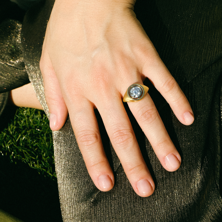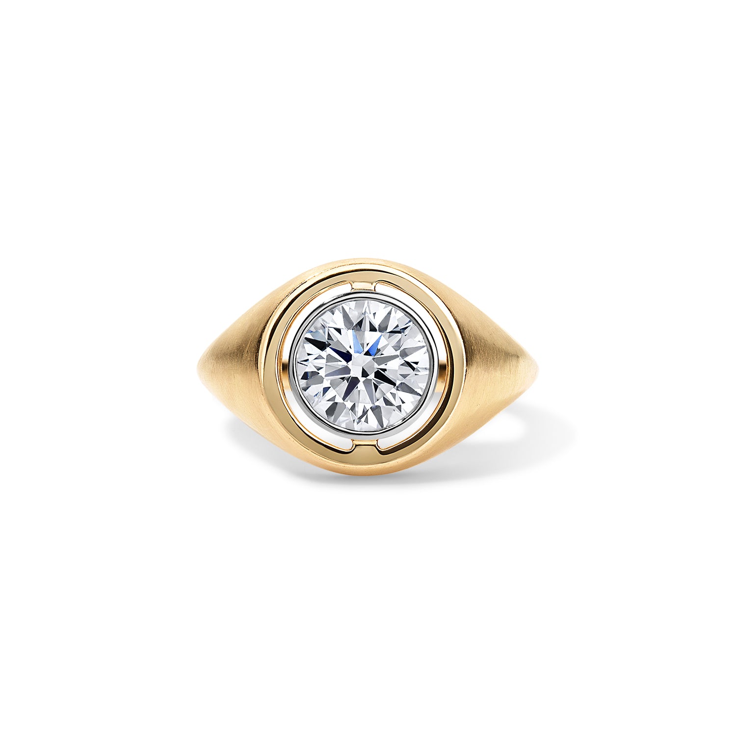 The Victo is an evolution of our beloved Victo signet, blending vintage charm with modern elegance. It features a striking satin finish on the exterior, complemented by a polished interior and our signature two-toned finish. Inspired by the belief that anything is possible, this design is highlighted by a floating diamond center that captivates and inspires. The perfect fit for a bride seeking a distinctive blend of timeless beauty and contemporary sophistication, or anyone wishing to celebrate themselves.